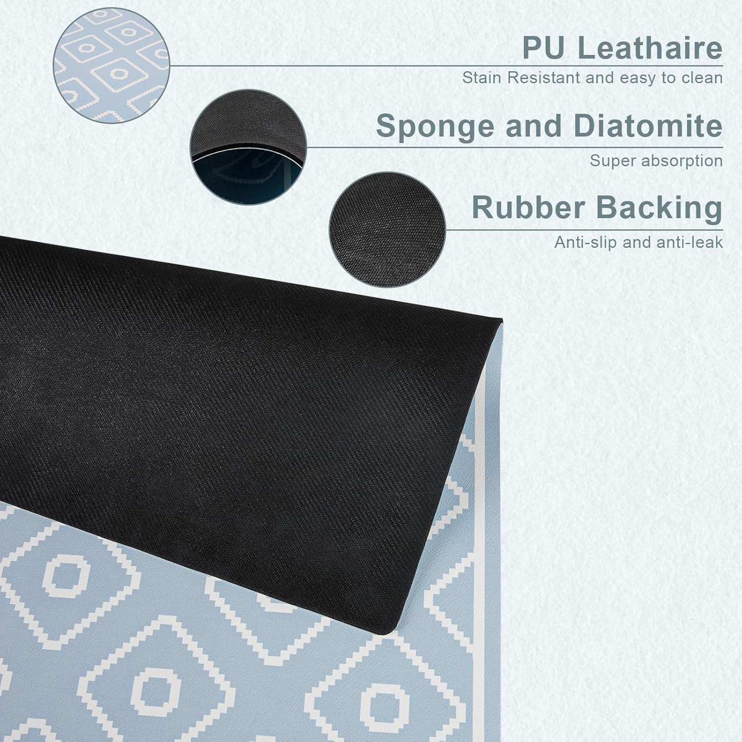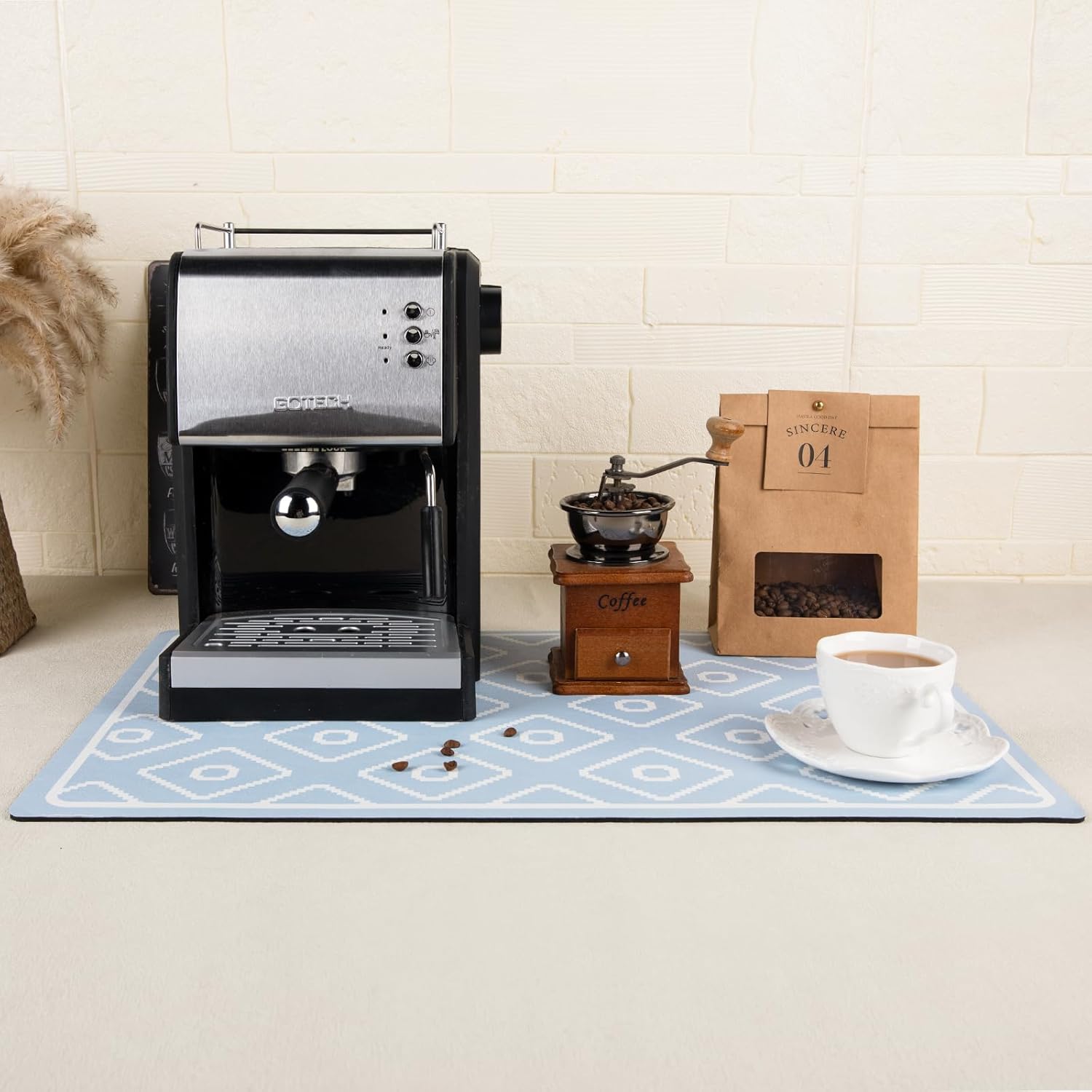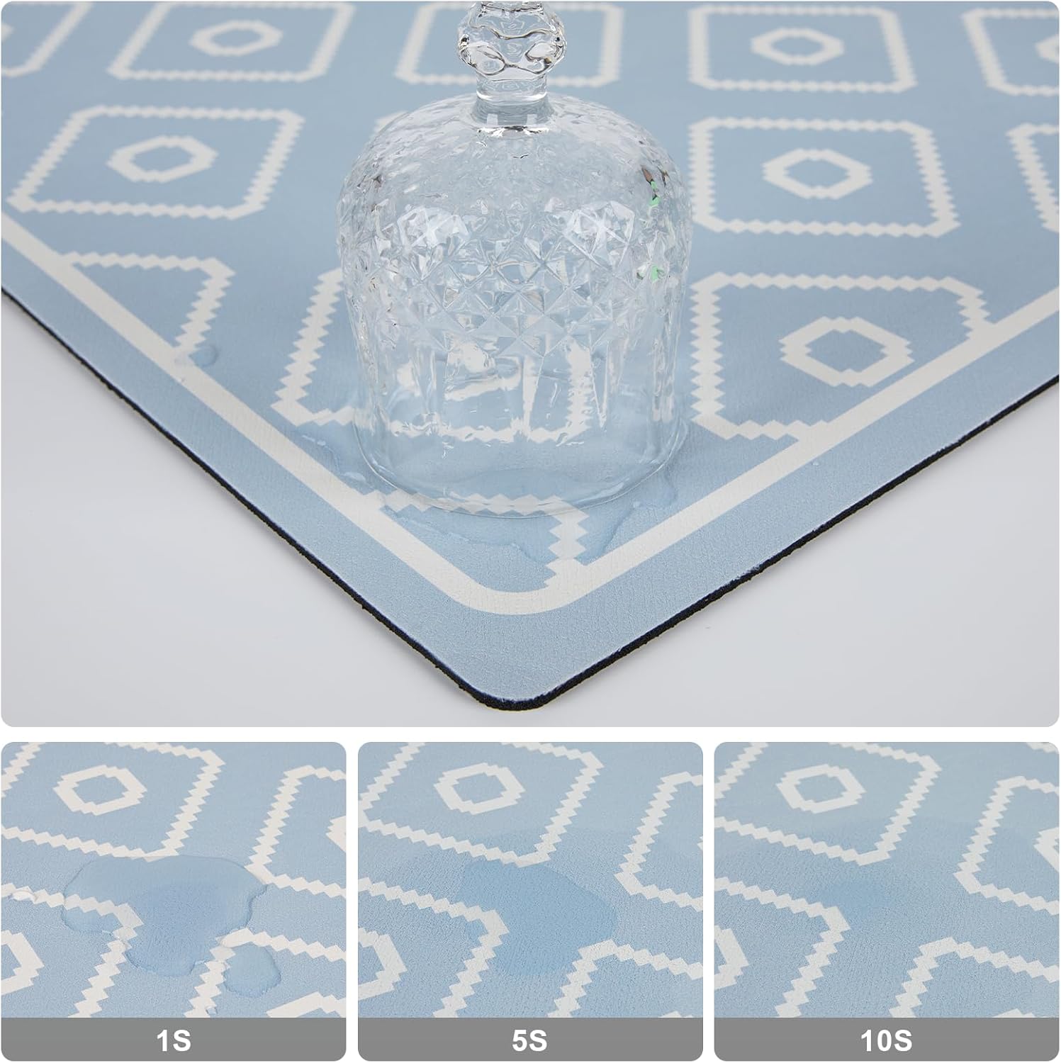 SUEH DESIGN Dish Drying Mat, Absorbent Coffee Mat 23.6 x 15.7 in Quick Dry Kitchen Drying Dish Drain Mat for Kitchen Counter Coffee Bar, Blue