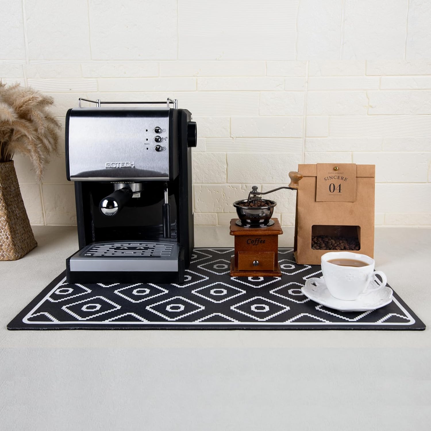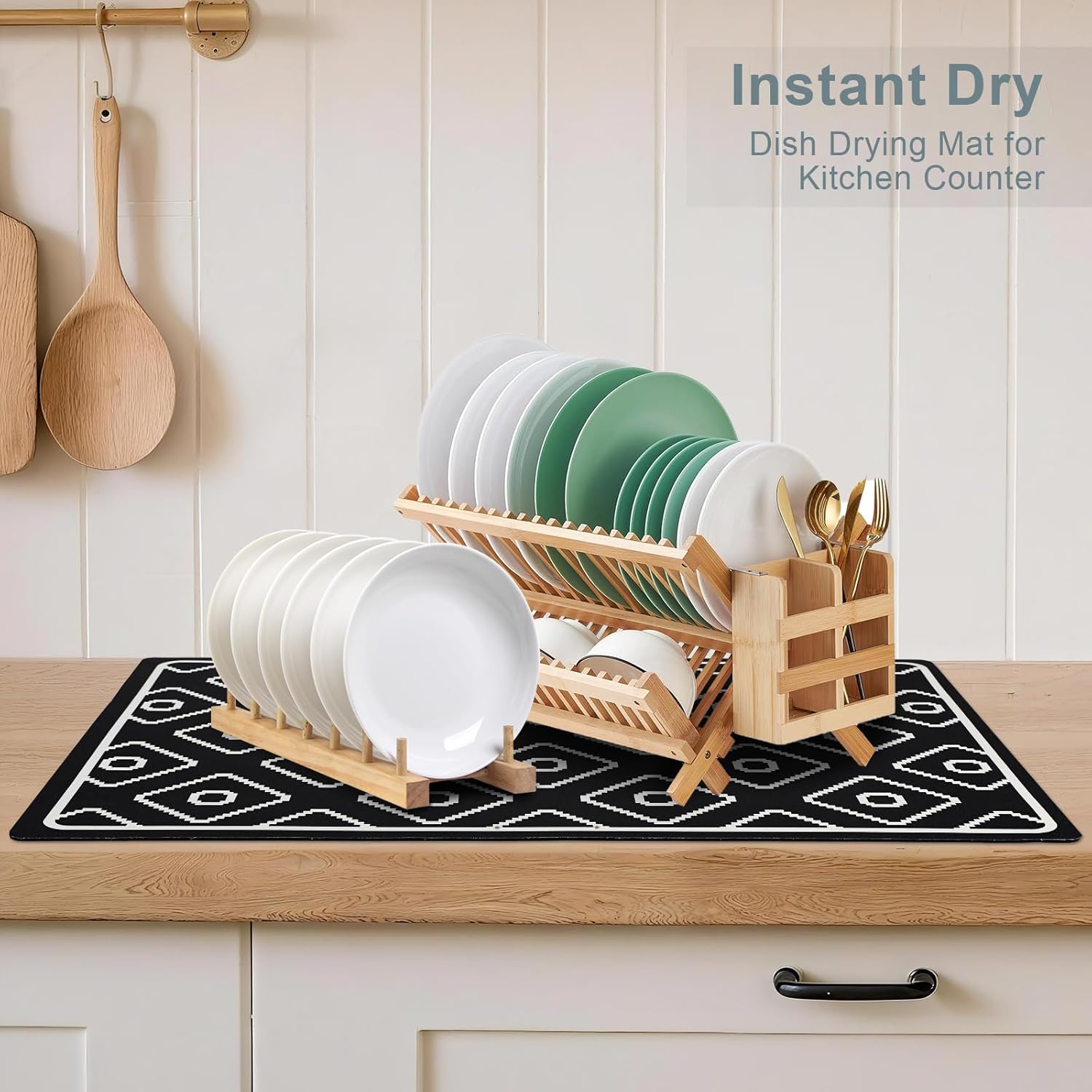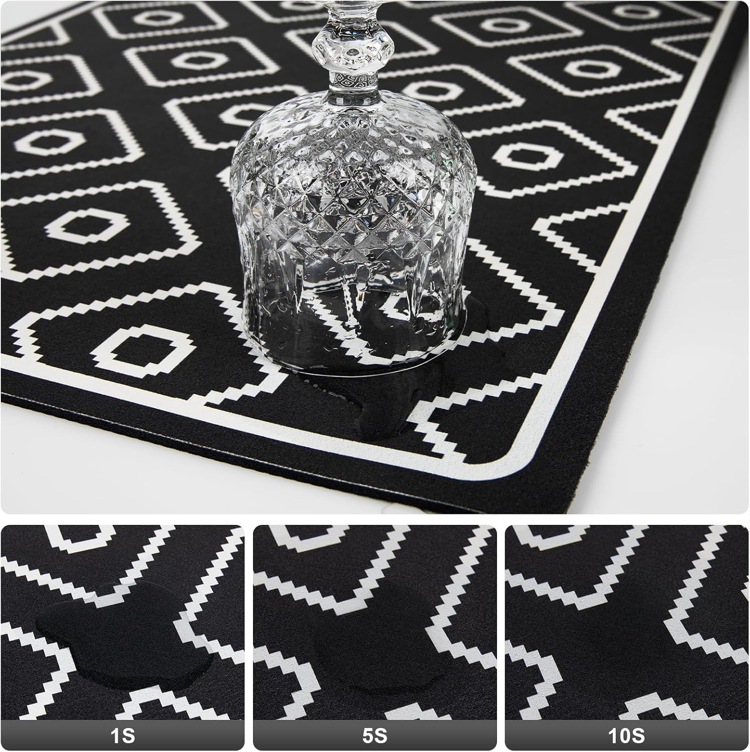 SUEH DESIGN Dish Drying Mat, Absorbent Coffee Mat 19.6 x 11.8 in Quick Dry Kitchen Drying Dish Drain Mat for Kitchen Counter Coffee Bar, Black