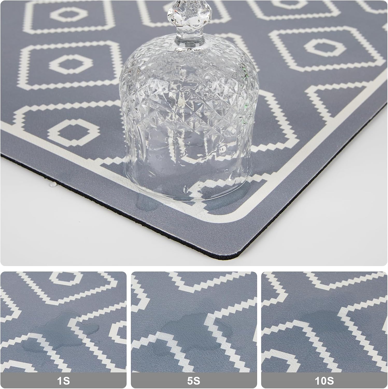 SUEH DESIGN Dish Drying Mat, Absorbent Coffee Mat 19.6 x 11.8 in Quick Dry Kitchen Drying Dish Drain Mat for Kitchen Counter Coffee Bar, Gray