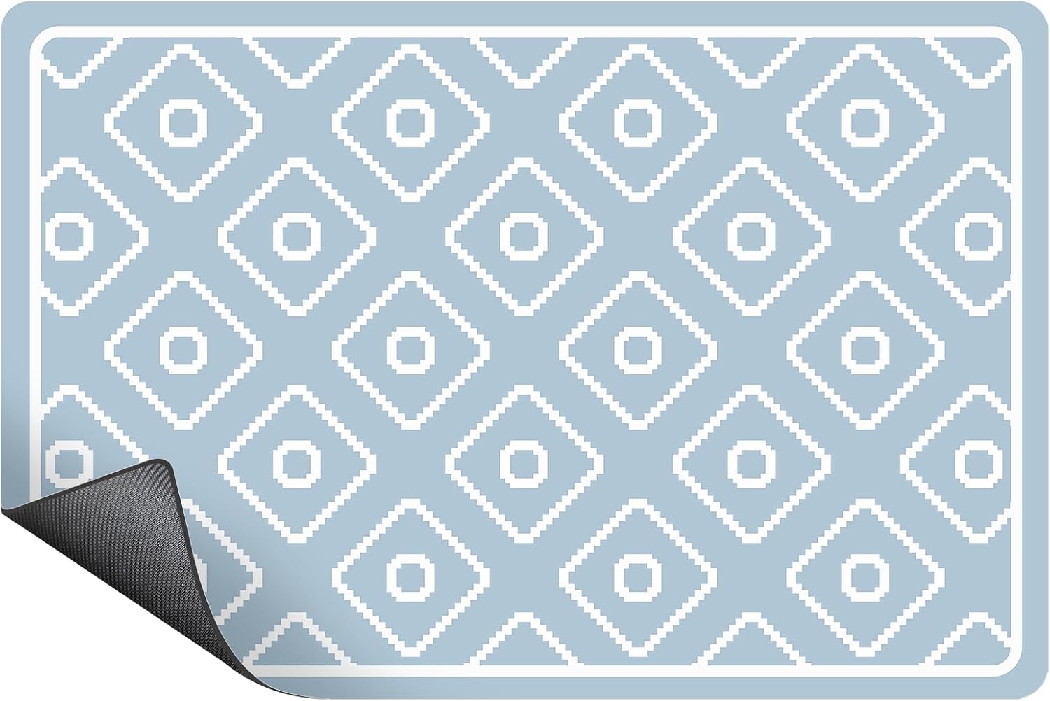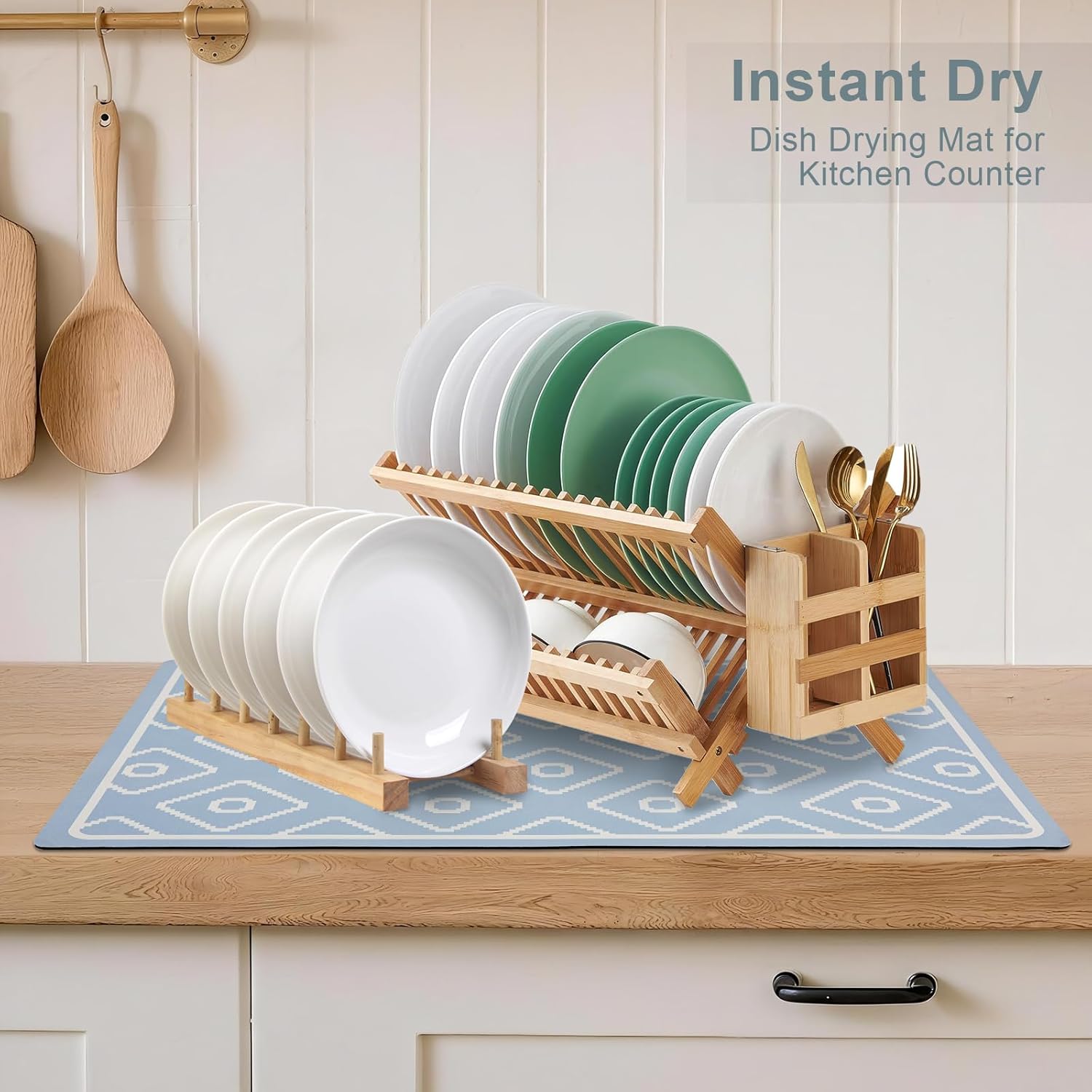 SUEH DESIGN Dish Drying Mat, Absorbent Coffee Mat 19.6 x 11.8 in Quick Dry Kitchen Drying Dish Drain Mat for Kitchen Counter Coffee Bar, Blue
