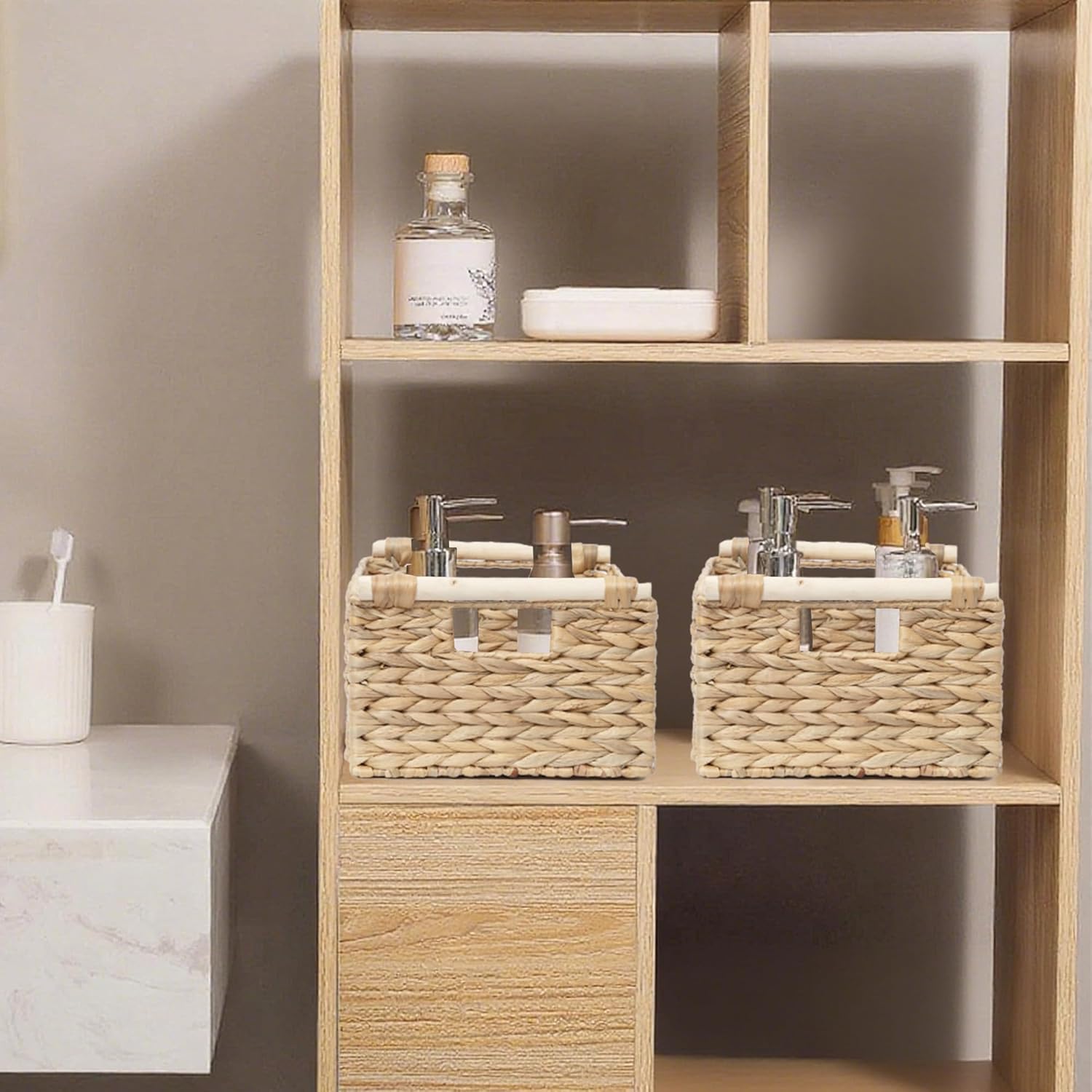 - Versatile Scenario Application:Perfect for home use in the living room, bedroom, kitchen, and office to maintain order. Also an excellent choice for commercial spaces like homestays (for storing guest amenities) and cultural & creative stores (as a display prop for handicrafts). The water hyacinth material and rustic design impart a natural and cozy atmosphere wherever they are placed.