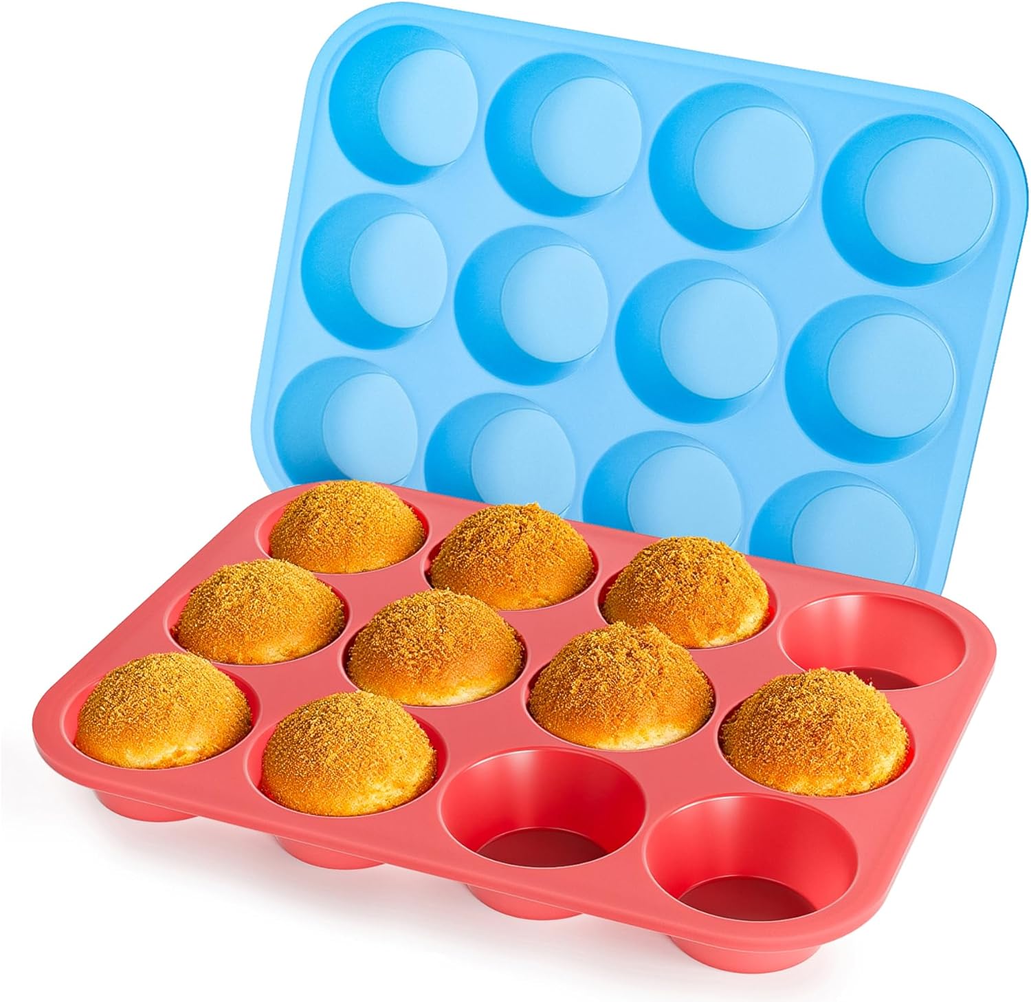 - Baking Perfection:Each muffin pan features 4x3 slots that allow you to bake 12 muffins at a time. Pan-size: 12.5'' x 9.4'' x 1.2'',Each cup diameter top: 2.8",Bottom of cup:2.1".This 12-cup muffin pan is designed for passionate home bakers, featuring reliable performance and even heat distribution. You can simply add the batter to the pans and allow it to bake at a desirable temperature.