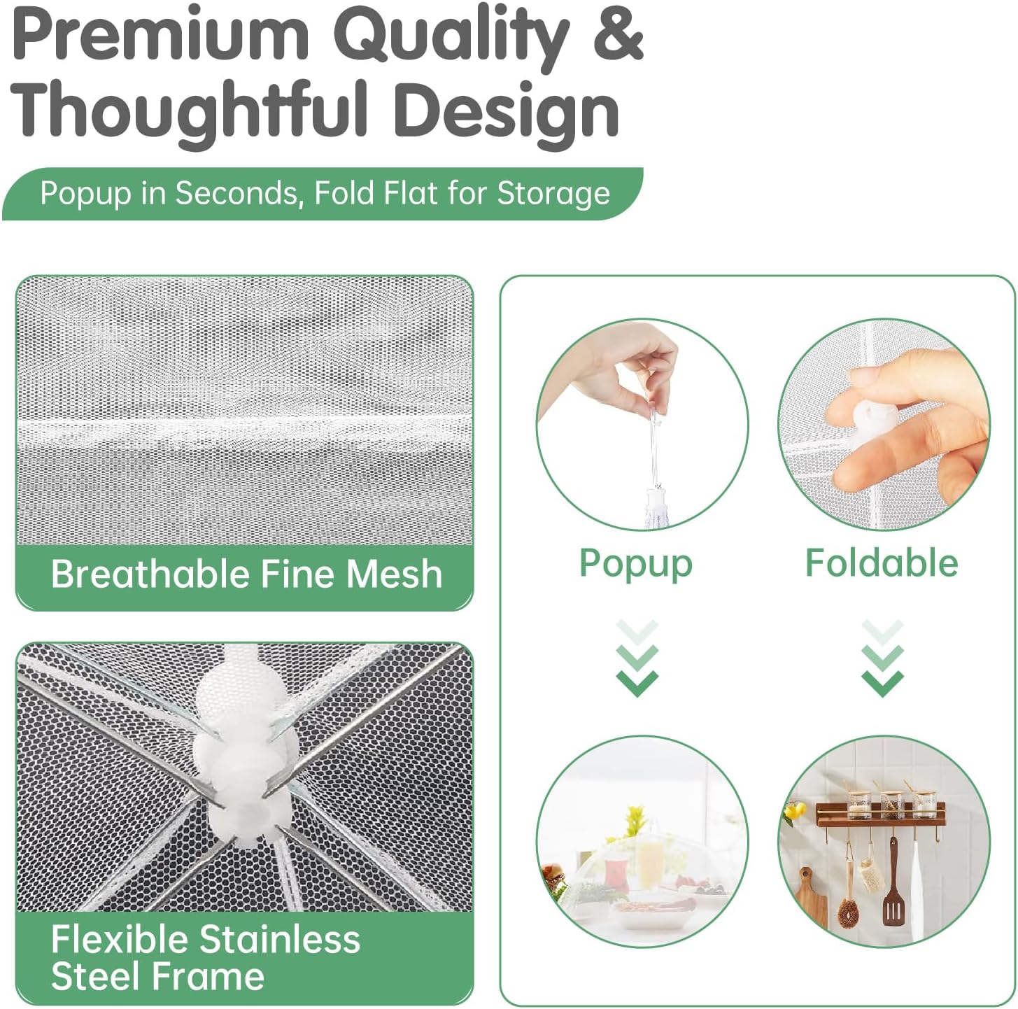 - 【Protective & Breathable Fine Mesh】Keep flies, bugs, and insects away from your food while allowing air to circulate freely. Our mesh food covers provide essential protection for outdoor dining, ensuring your meals stay sanitary and enjoyable during picnics, barbecues, and backyard parties.