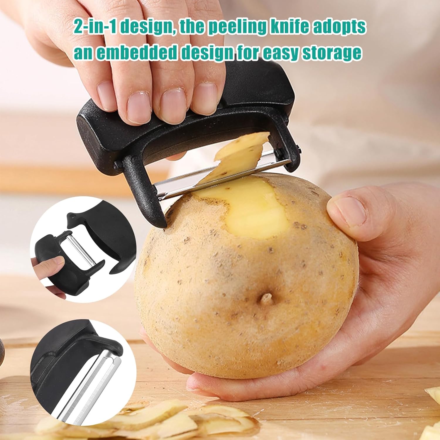 - 【5-in-1 Kitchen Marvel: Spiral, V-Cut, Scoop & Peeler】Say goodbye to multiple single - task tools! Our all - in - one kitchen set combines a razor - sharp spiral cutter, a precise V - shaped tool, a crinkle - cut knife, and a sturdy stainless steel scoop. Whether you're a home cook, food stylist, or party host, it's your go - to for effortless food prep and stunning presentations.