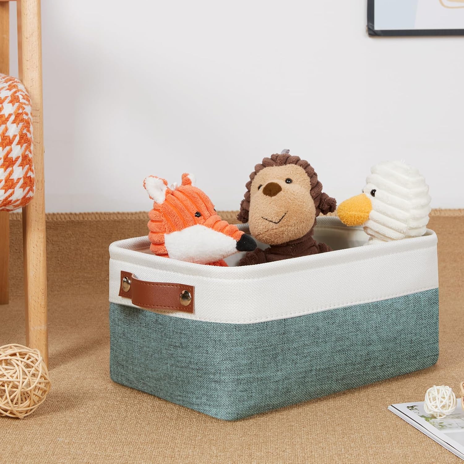 DULLEMELO Set of 6 Small Baskets for Organizing, Small Fabric Storage Bins for Storage, Collapsible Storage Bins with Handles for Shelves, Closets (11.8"x7.9"x5.1", White&Deep Green)