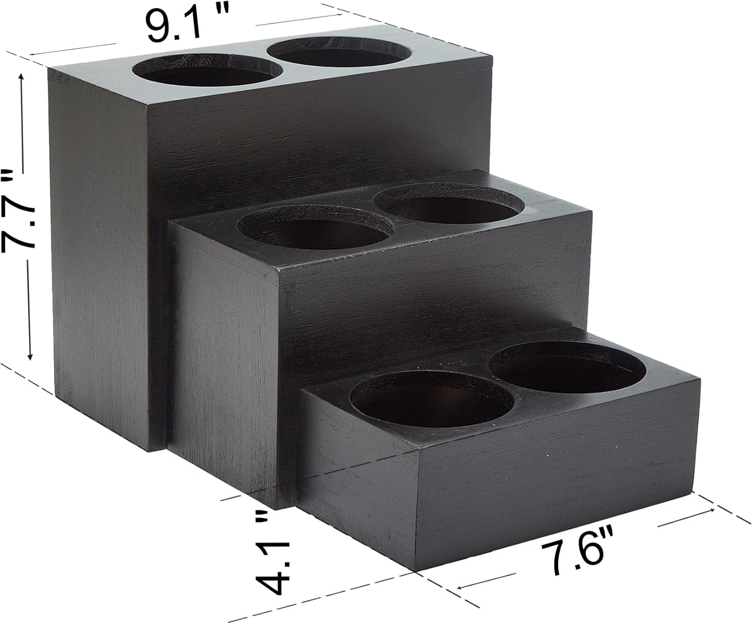 Black Wood Coffee Syrup Rack Organizer, 3 Tier Syrup Bottle Holder for Coffee Bar, 6 Bottles(750ml) Storage Stand for Syrup, Wine, Dressing for Kitchen Coffee Station(3 Separate Pieces)