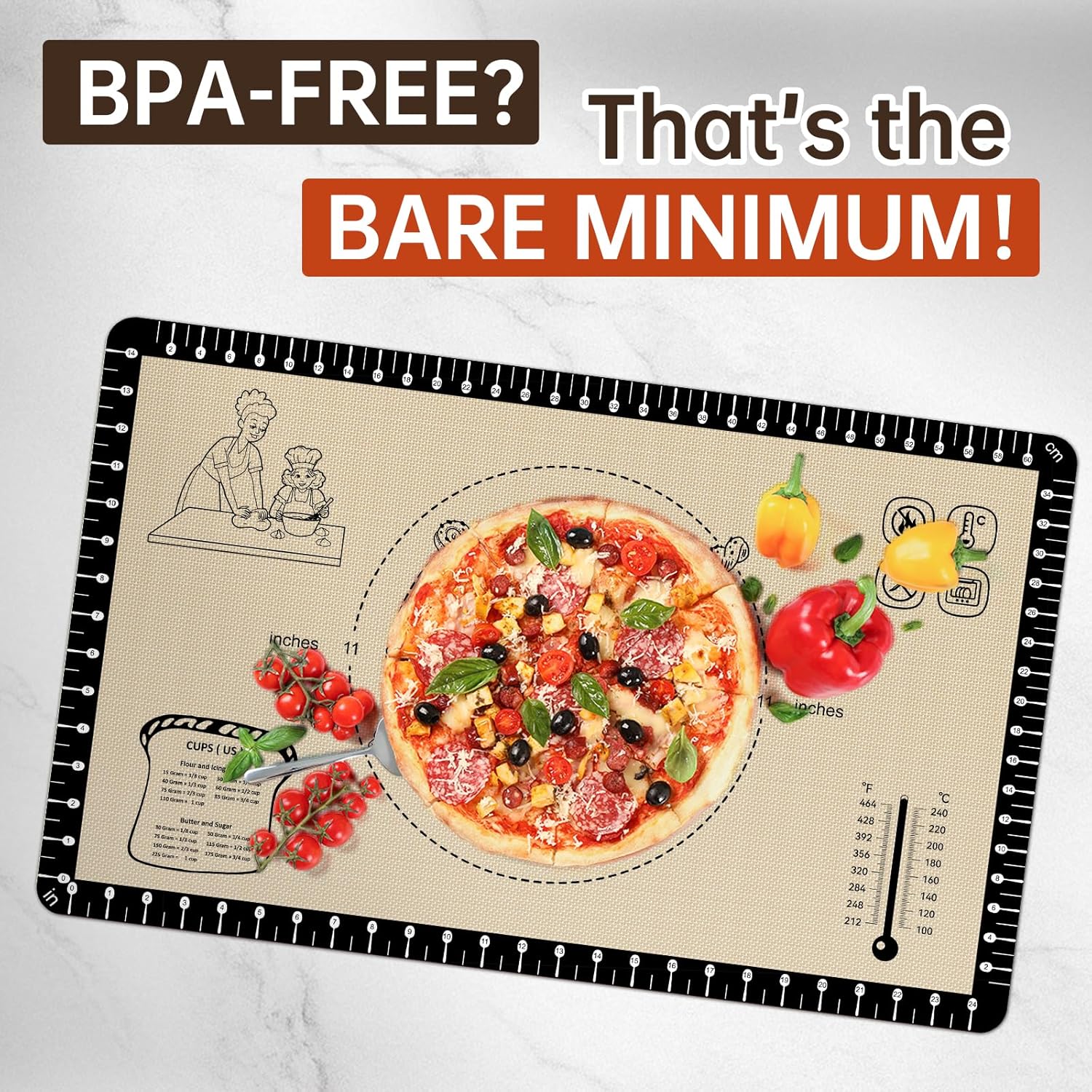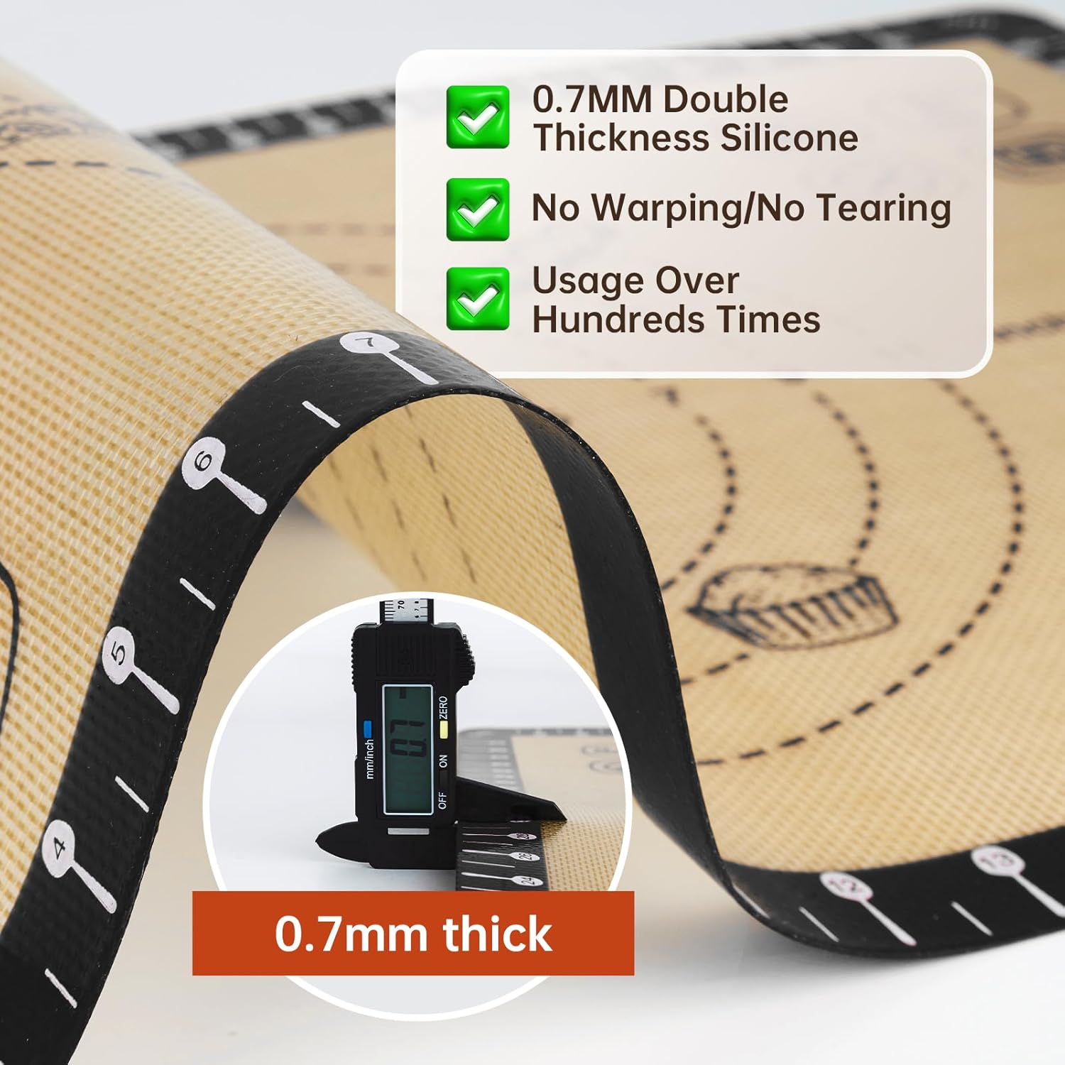 Extra Thick Silicone Baking Mat with 10 Easy Recipes,Silicone Mat for Baking, Non Stick Pastry Mat for Dough Rolling, Macaron, Cookie, bread, Pizza, Fondant/Pie Crust, Oven& Dishwasher Safe