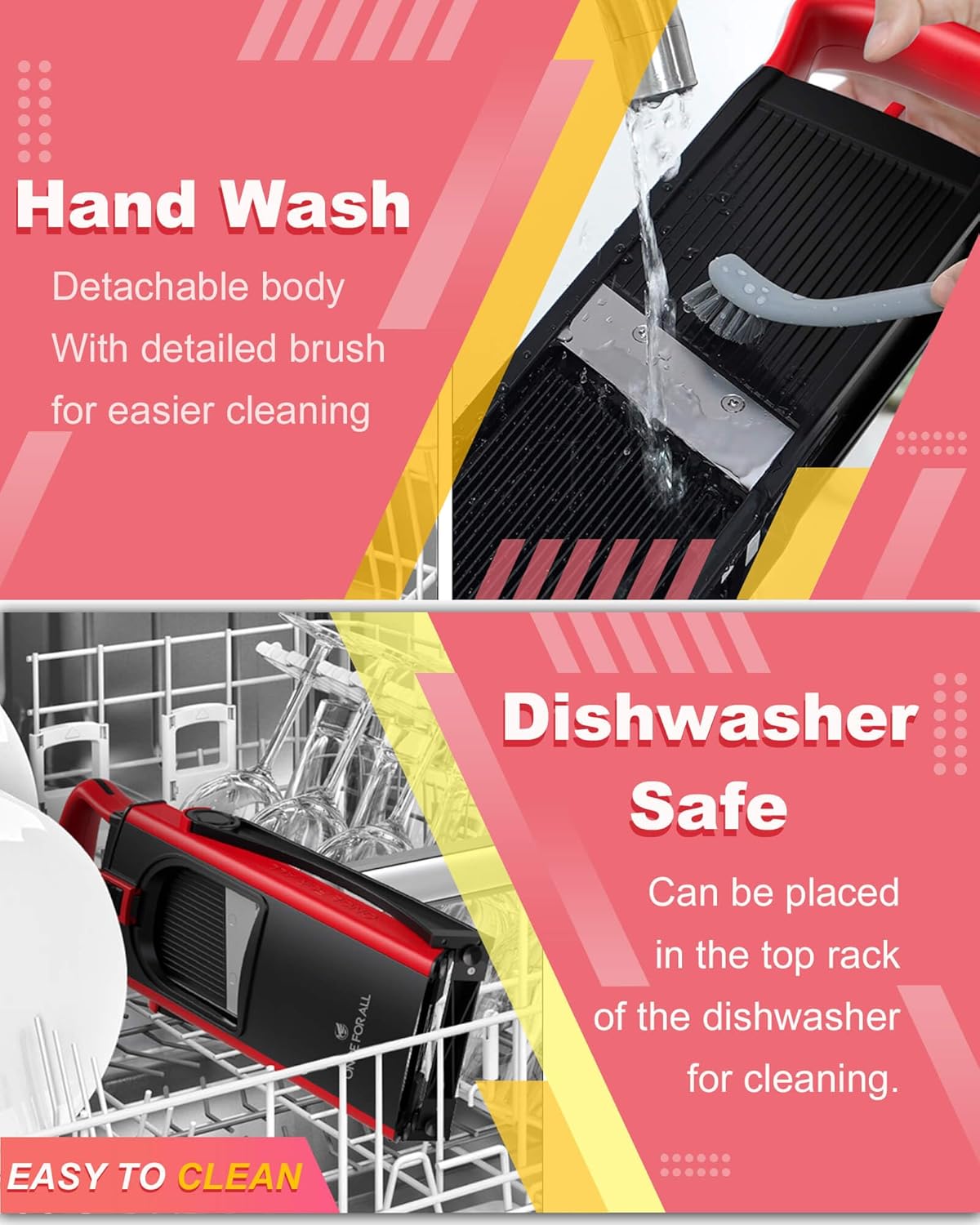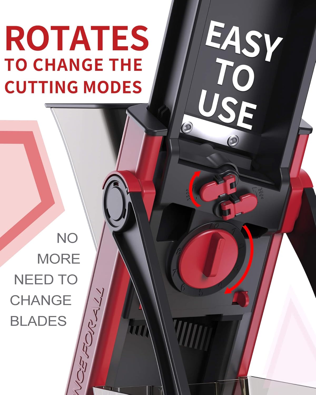 ONCE FOR ALL Safe Mandoline Slicer For Kitchen, Biger Size, Adjustable Vegetable Chopper Food Slicer Potato French Fry Cutter with Peeler, Detachable, Kitchen Chopping Artifact (Red)