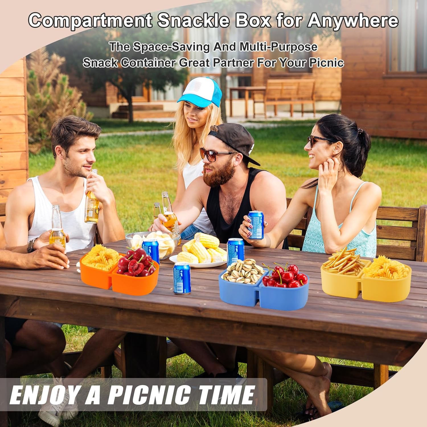 - DUAL COMPARTMENT DESIGN: 8 oz silicone container features 2 separate sections for organized snack storage, perfect for portion control and keeping foods separate