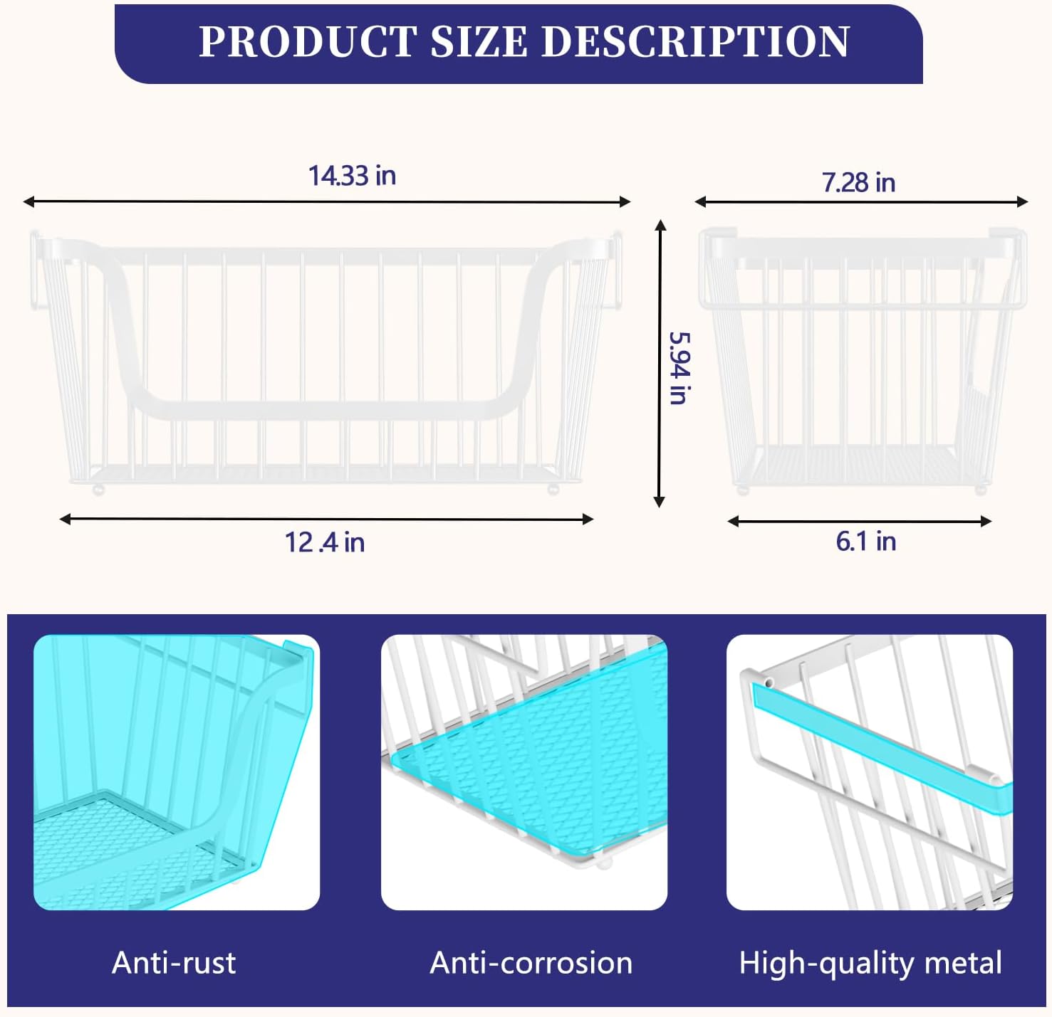 - Upgraded U-Shaped Large Opening: For metal baskets on storage shelves, for easier access to items when stacked. The front of each metal basket is designed with a large U-shape opening, which not only maintains the unique aesthetics but also upgrades the practicality. It can stackable shelf baskets more convenient for you and your family to use.