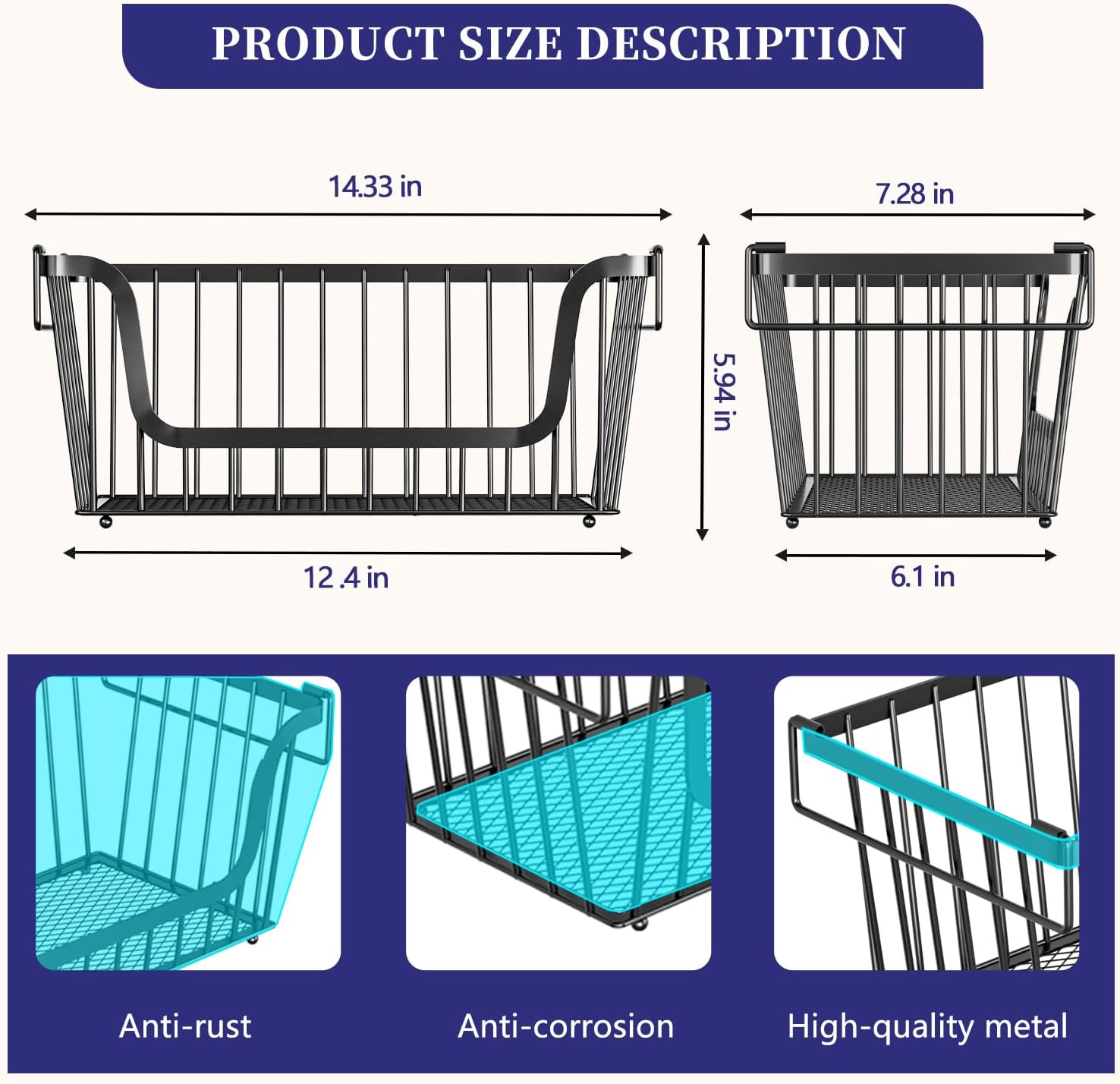 - Upgraded U-Shaped Large Opening: For metal baskets on storage shelves, for easier access to items when stacked. The front of each metal basket is designed with a large U-shape opening, which not only maintains the unique aesthetics but also upgrades the practicality. It can stackable shelf baskets more convenient for you and your family to use.