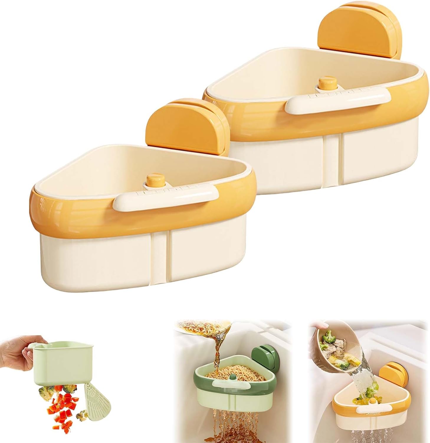 Corner Sink Strainer,2025 New Suction Cup Press Sink Strainer Basket,Automatic Dumping food Waste Catcher for Sink,Faucet Sponge Storage Rack,Corner Sink Trash Catcher for Food Waste (Yellow 2PCS)