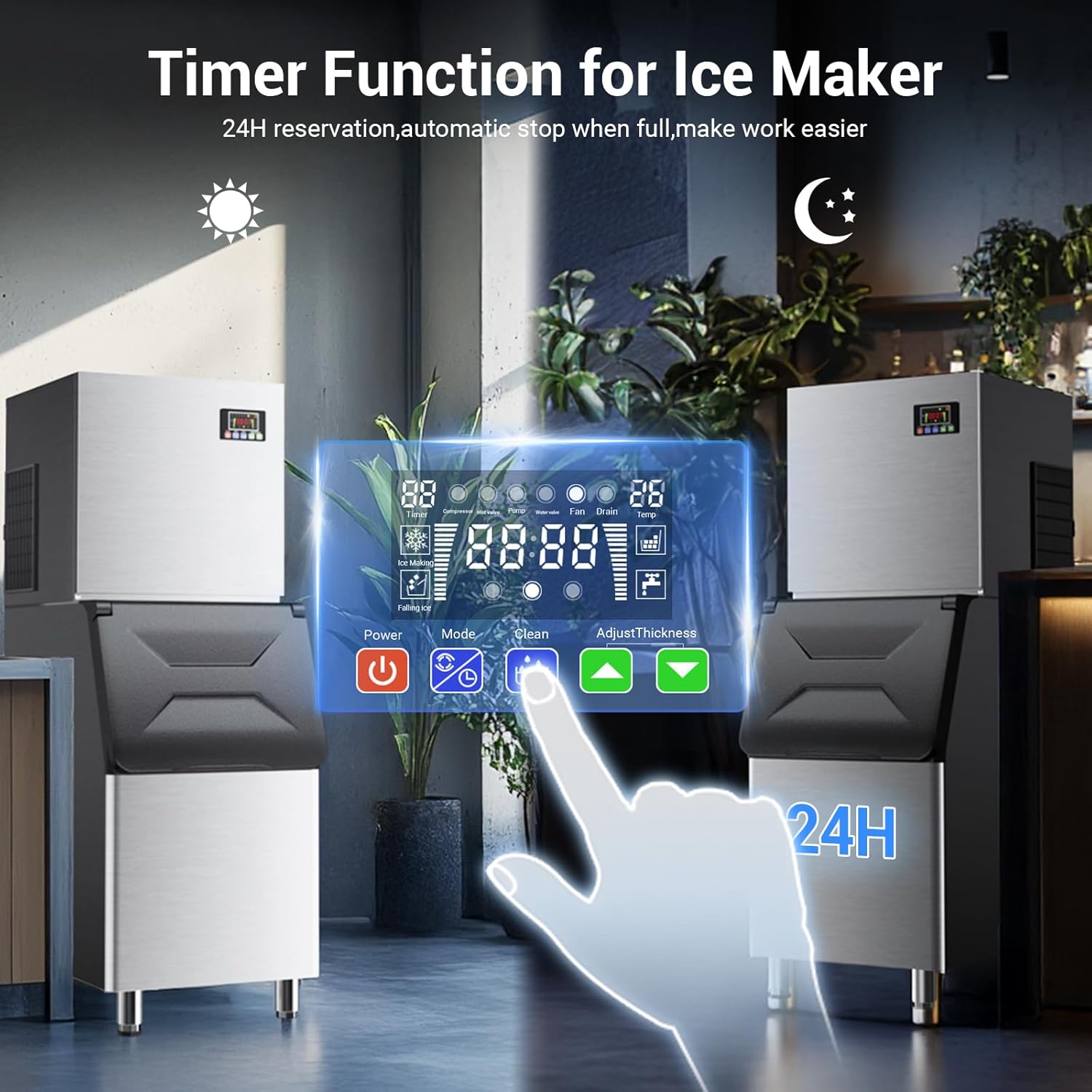 600LBS/24H Commercial Ice Machine Maker with 400LBS Storage Bin, Large Industrial Ice Maker, Self-Cleaning, Timing Function, 156 Ice Cubes Ready in 5-15min, Adjustable Ice Thicknesses
