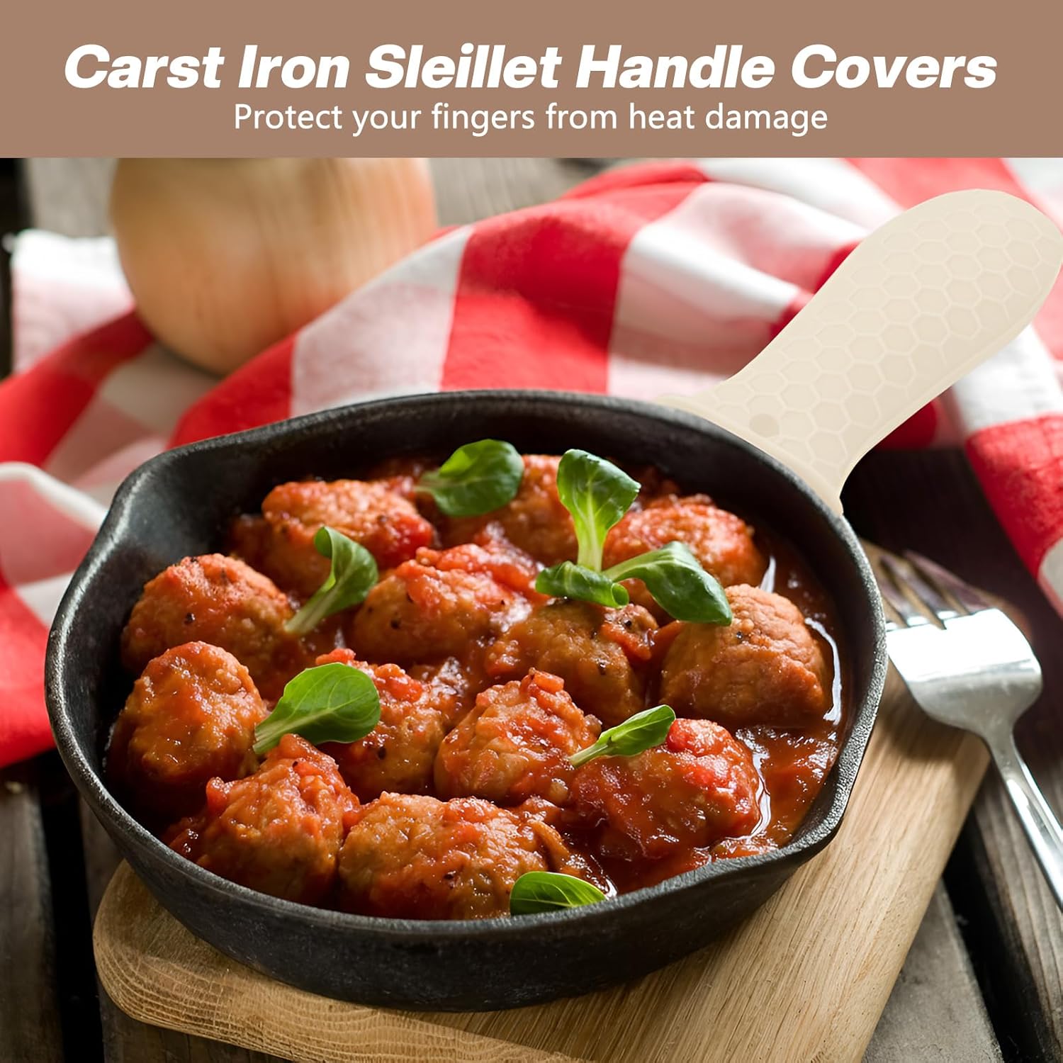 Patelai 2pcs Silicone Handle Cover for Cast Iron Skillet Kitchen Silicone Handles for Pots and Pans Non-Slip Pot Holder Sleeve for Fry Pan Griddles Metal Aluminum Cookware(Beige)