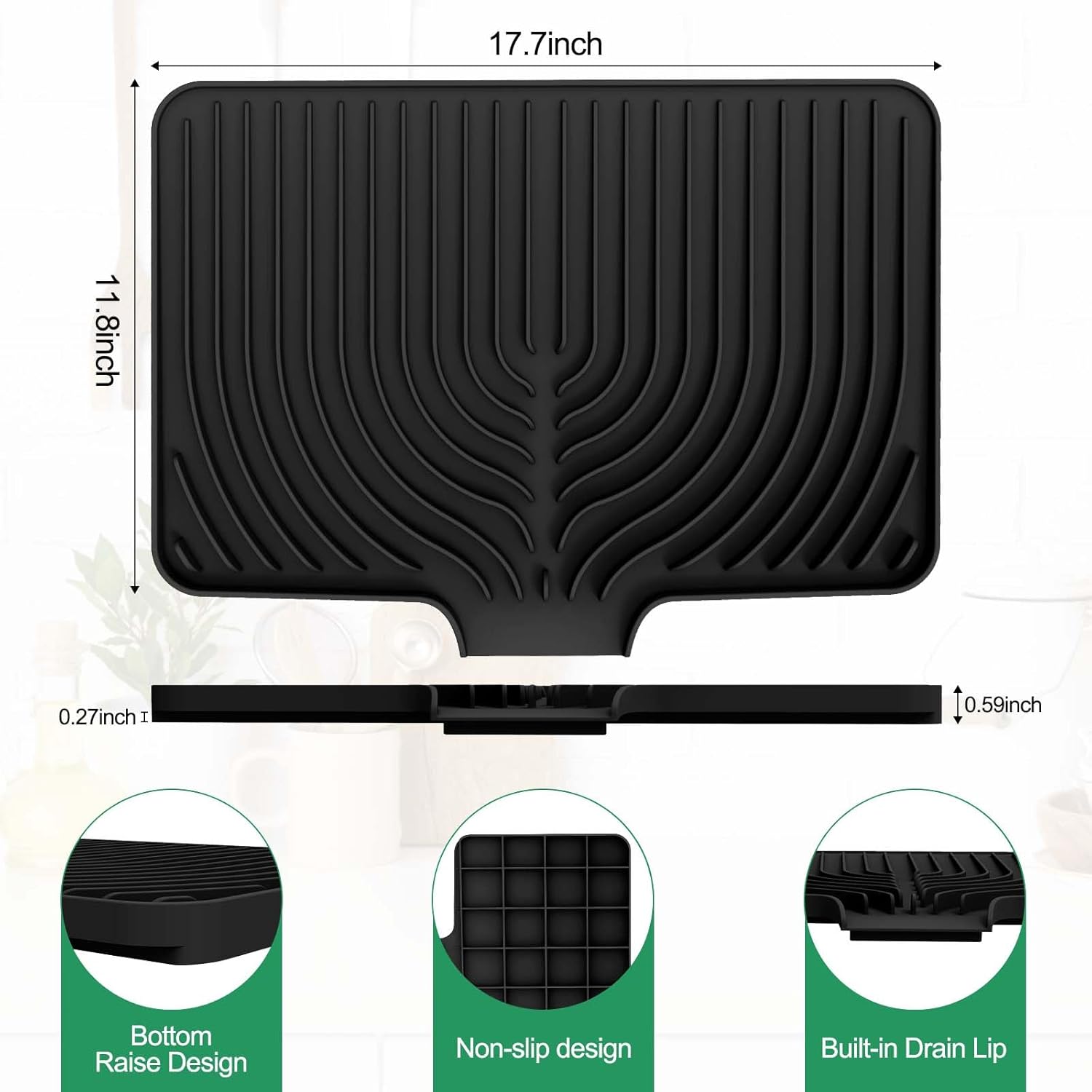 GUUKIN Dish Drying Mat, 17.7" x 11.8 " Drying Matt Kitchen Counter,Non-Slip Drying Pad, Easy Clean Pad for Countertop Protection, Multi-Functional Use (Black)