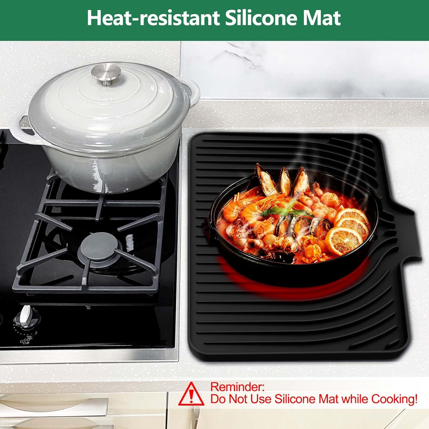 • Anti-Slip and Heat-Resistant: Dish mat drying kitchen mat has a great anti-slip design, keeping dishes, fruits, veggies and glassware steady. Besides, it's heat-resistant up to 450°F (230°C), safeguarding countertops well from hot pots and appliances