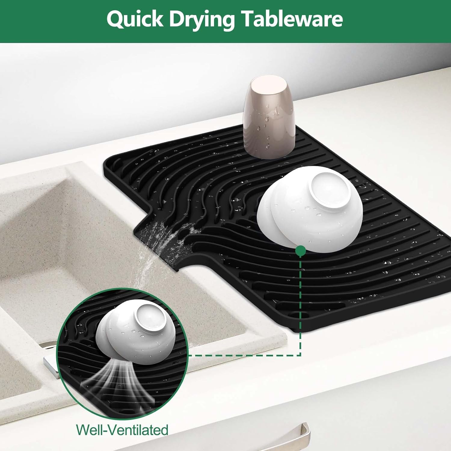 • Food-Grade Silicone Material: The kitchen counter dish drying mats are crafted from high-quality, food-grade silicone. It's durable, soft and resistant to deformation. It offers a safe surface for drying dishes, fruits and veggies, guaranteeing a cleaner and more hygienic kitchen area
