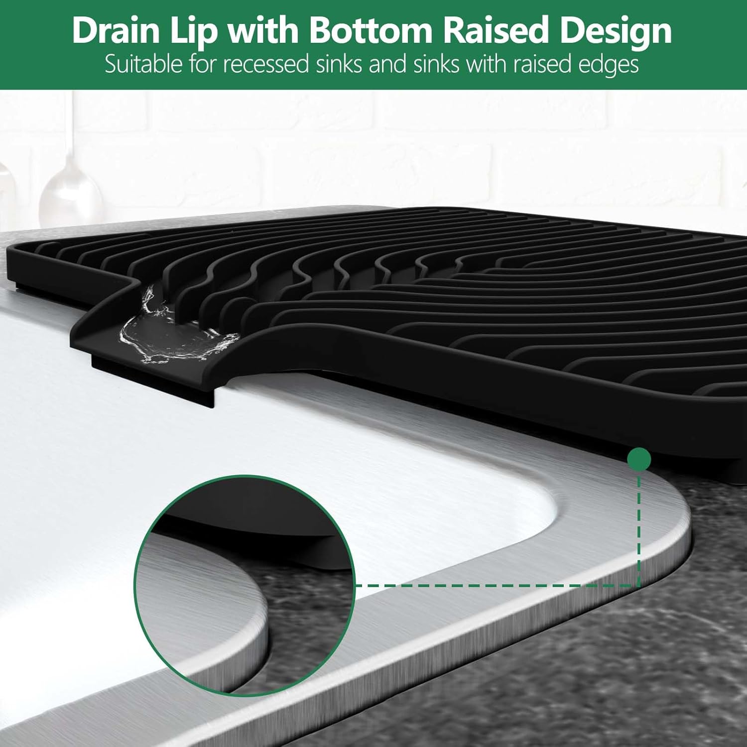 • Unique drain design: Drying matt kitchen counter work on both counter and sink. Its bottom's front is raised, fitting all sink designs like those with lips. Water gathers in the drain instead of flowing onto the counter, keeping it clean and tidy