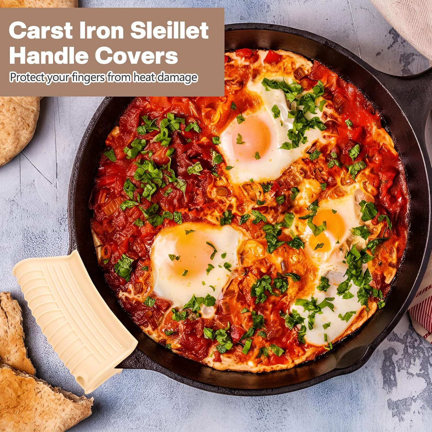 Patelai 4 Pcs Silicone Assist Hot Pan Handle Holder Pot Handle Covers for Cast Iron Skillets Holder Sleeve Nonslip Heat Resistant Pan Cover for Enameled Griddles Casserole Frying Cookware (Beige)