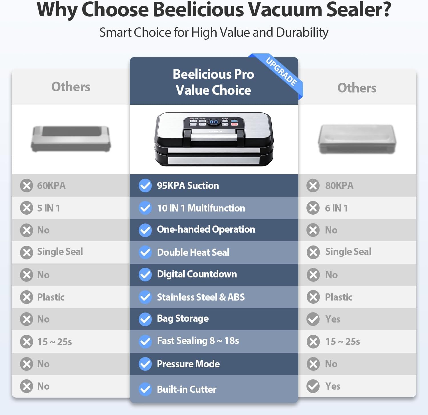 - 【95KPA Double Pump】Powerful 95kpa suction and 125w strong power achieve a tight vacuum seal in just 8-18 seconds — 50% faster than other sealers. Upgraded vacuum silicone gasket offers long-lasting use without replacement, enhancing the vacuum effect and greatly extending the machine's lifespan.