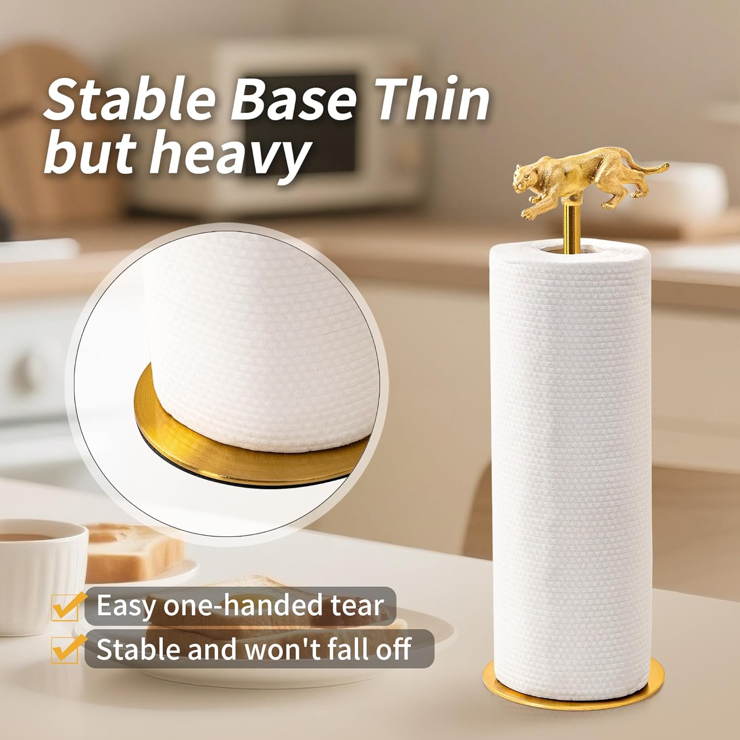 - Elegant and Functional Design: Designed with a charming Leopard motif and a vintage brass finish, this paper towel holder combines practicality with artistry. Its compact, freestanding structure fits seamlessly on any countertop, offering easy access to paper towels while enhancing your homeβ s decor. Ideal as a kitchen towel holder or bathroom paper towel holder.
