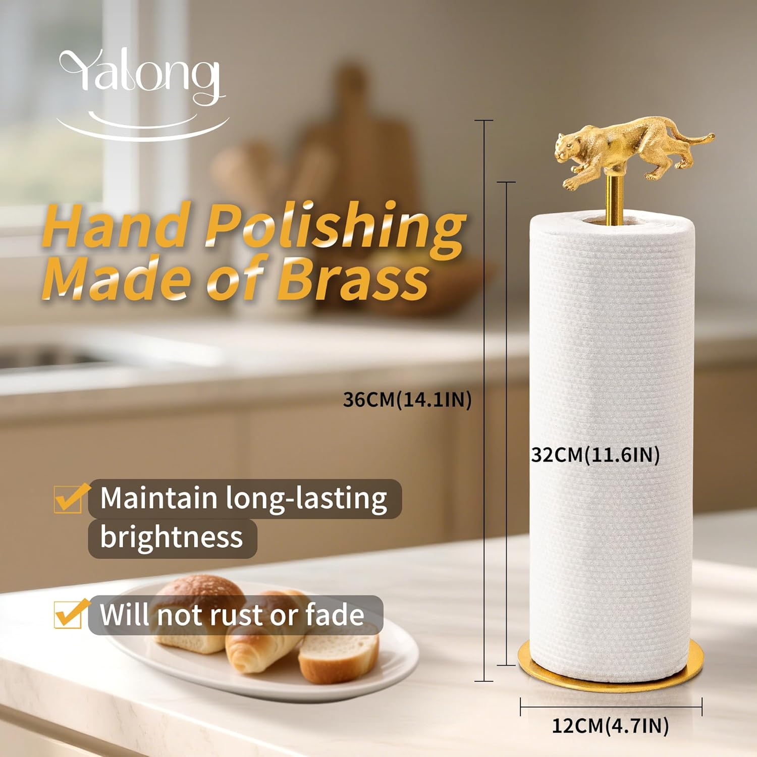 - Premium Brass Material & Craftsmanship: This exquisite gold paper towel holder is crafted from high-quality brass, featuring a removable brass Leopard on top. Hand-polished and glazed for a durable, tarnish-resistant finish, it ensures long-lasting beauty. As a decorative paper towel holder, it adds a touch of elegance to your kitchen or bathroom, making it a perfect housewarming gift.