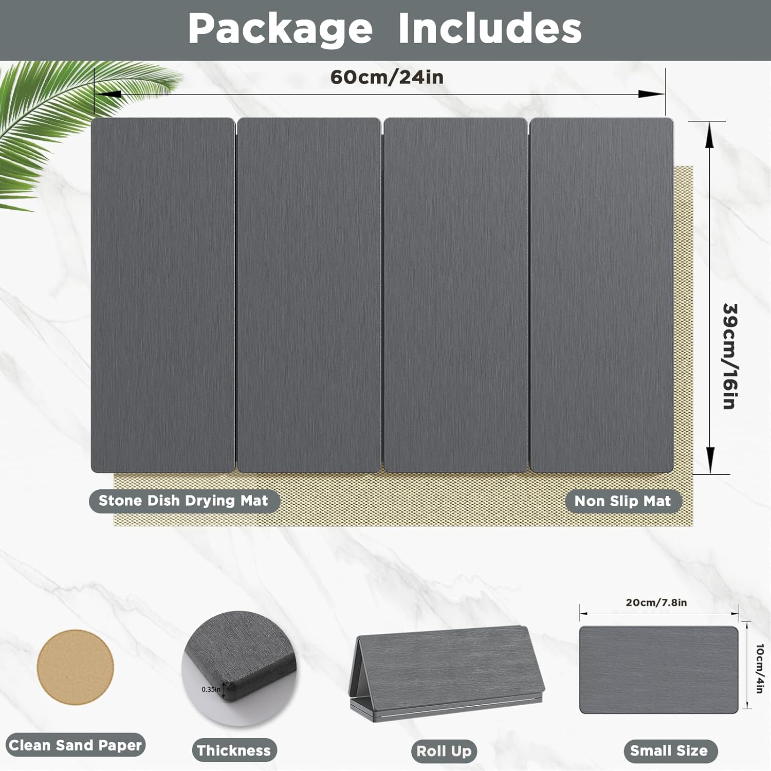 - 【The Ultimate Duo : Large & Small Mat Set】Maximize your kitchen convenience with this complete set. You'll receive one large stone drying mat for all your dishwashing needs, one small stone mat for clever secondary uses, plus a sanding tool and a non-slip pad. The large stone drying mat handles everything from plates to pots with ease, while the small drying mat is brilliantly versatile—perfect as a dedicated soap mat or an elegant coaster. It's the perfect pairing for an organized, drip-free kitchen!