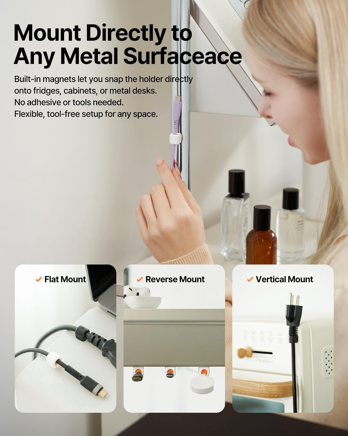 - Enhanced Magnetic Hold (~2.5x vs previous model): Upgraded magnets plus EVA foam assist grip keep heavier cables like HDMI or thick braided leads set in place up to 7.5 mm, reducing slip on desks, nightstands, and car dashboards