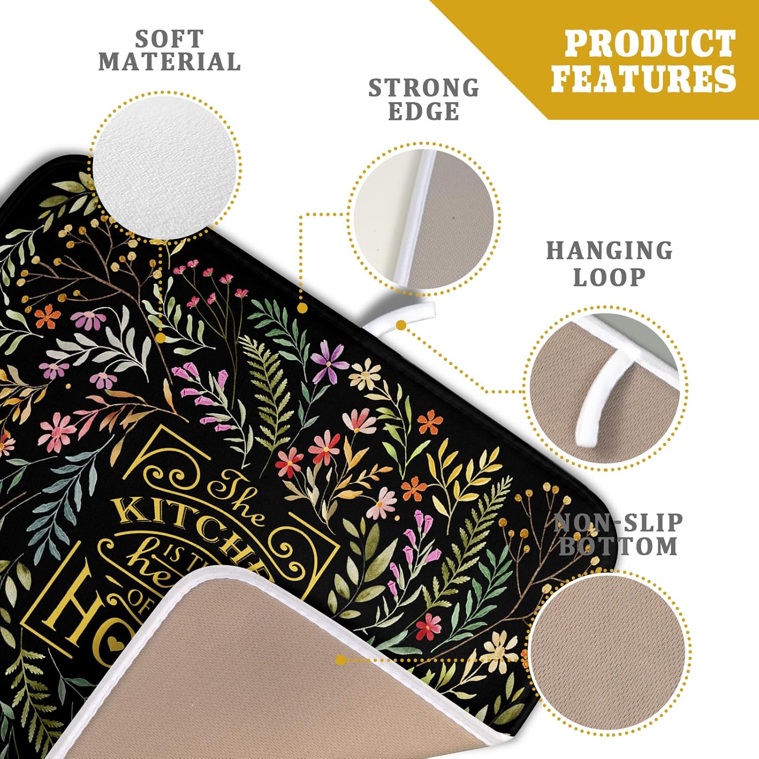 Absorbent Dish Drying Mat Colorful Flowers Microfiber Pad for Kitchen Counter Coffee Bar Decor 16" X 18"