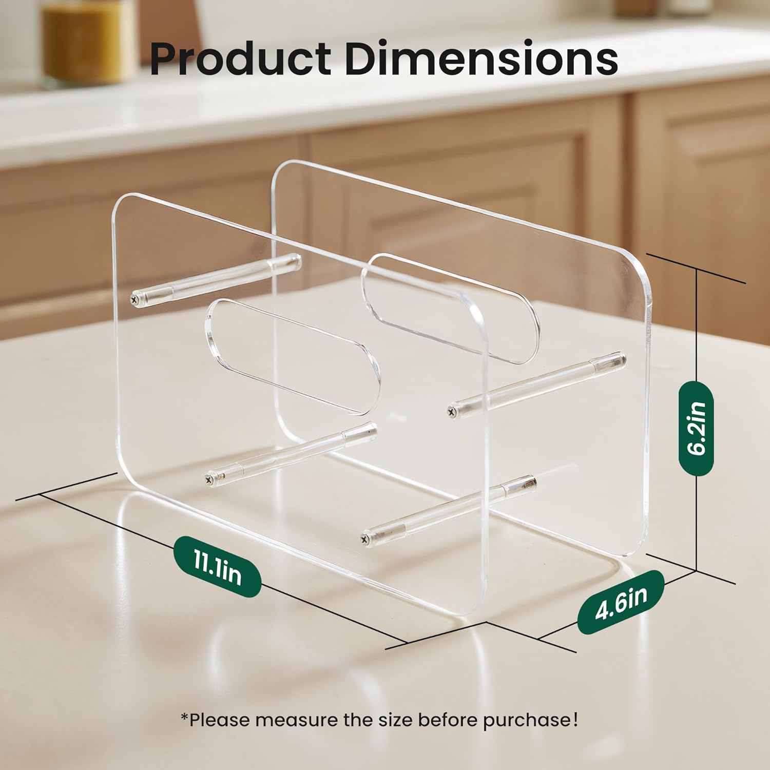 - DURABLE CONSTRUCTION: Paper plate storage holder under cabinet made from sturdy clear acrylic material with metal rods for stable and long-lasting plate organization