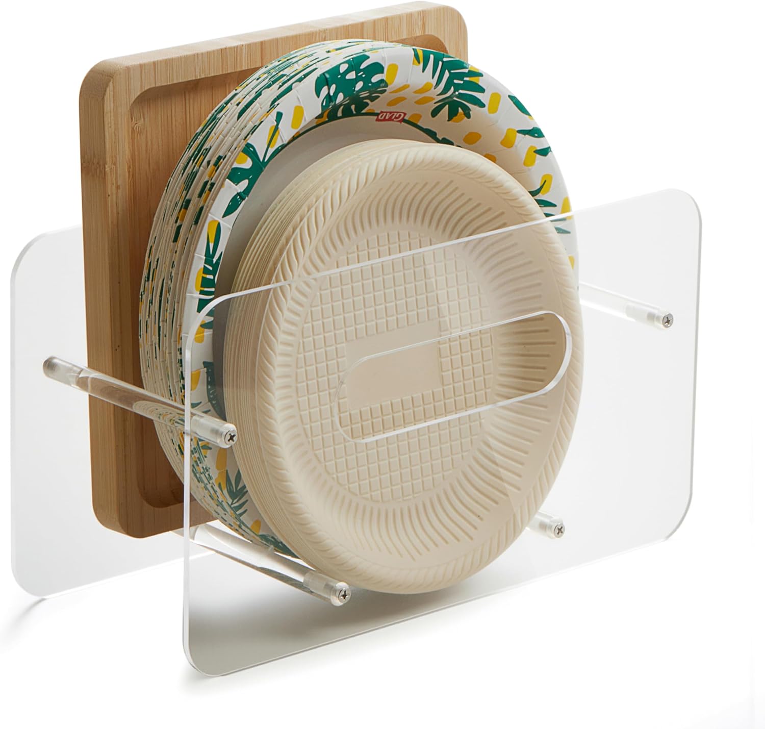 - PRACTICAL ORGANIZATION: Acrylic paper plate dispenser multiple slots for efficient plate storage and easy access in kitchens, RVs, or outdoor settings