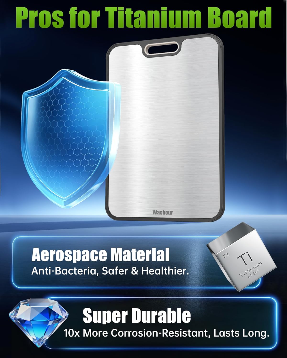 - 2-in-1 Cutting Board: Features 99.9% pure titanium and wheat straw PP, perfect for separating meat and vegetable prep