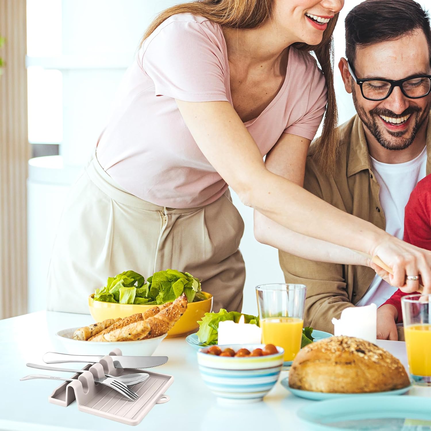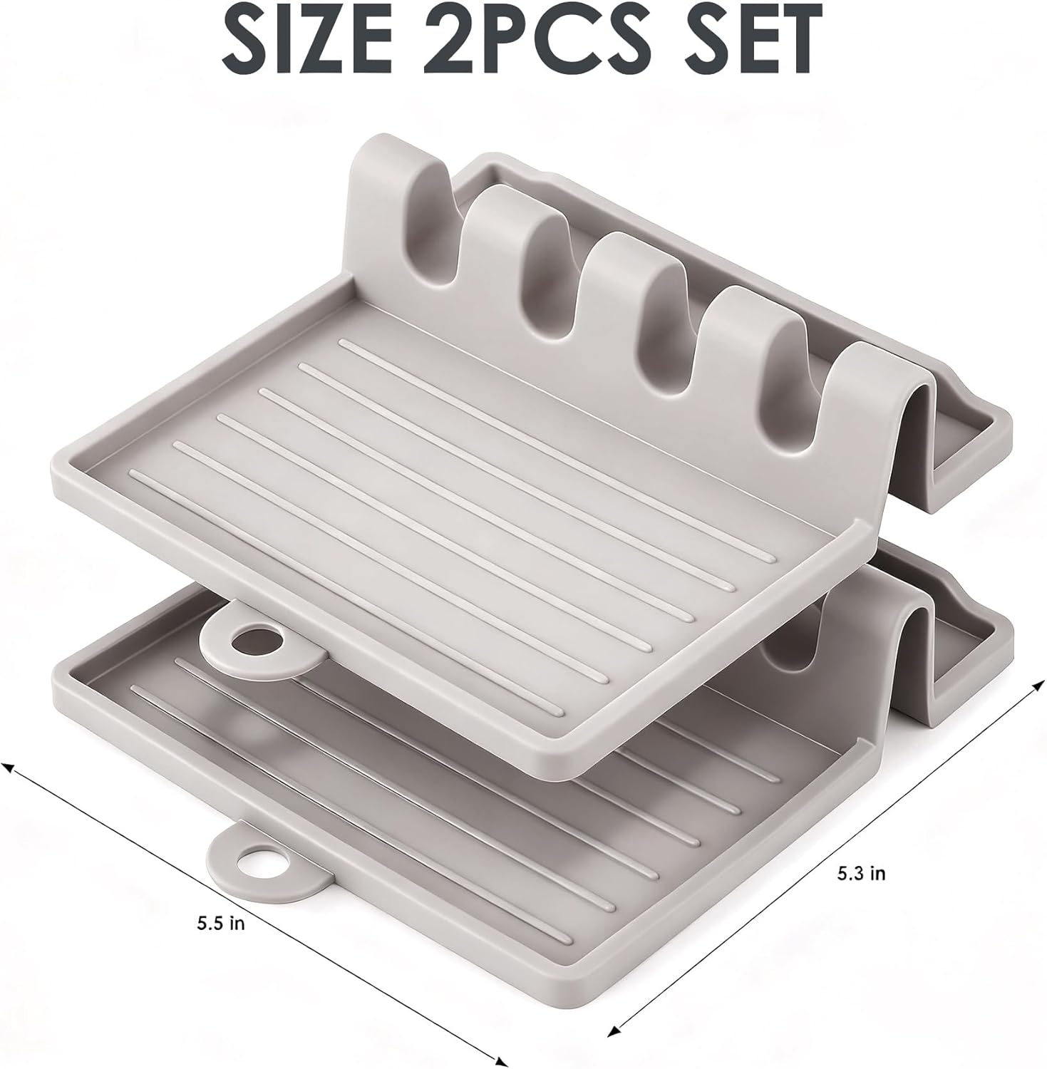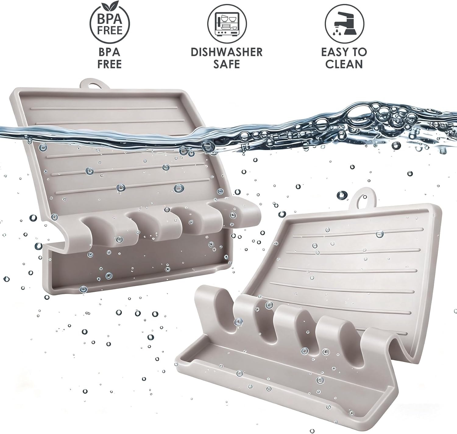 2-PACK 600°F Heat Resistant Silicone Spoon Rest, Multiple Utensil Rest, BPA Free Easy to Clean Dishwasher Safe, Khaki