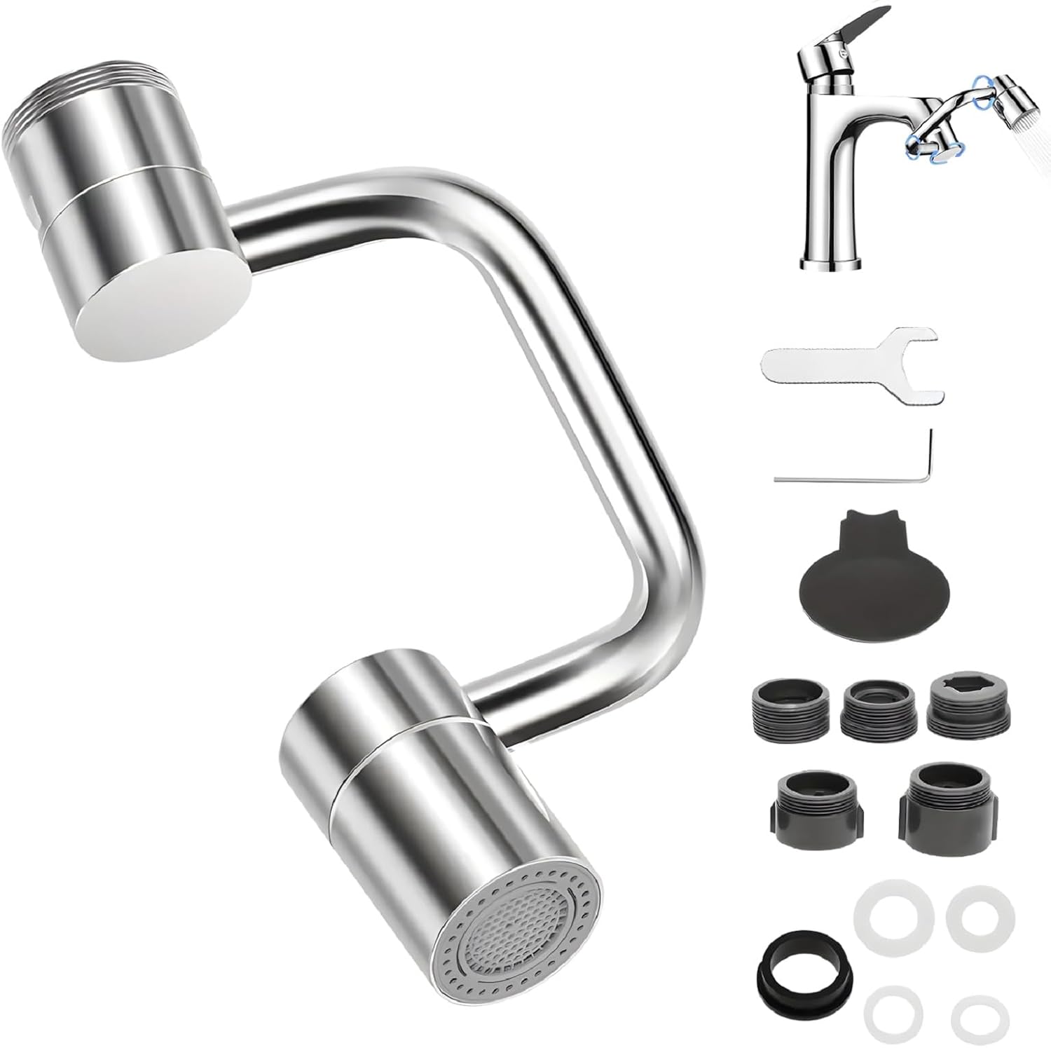 Flexiflow 1080°Rotatable Faucet Aerator, New Rotating Faucet Extender, U Shape Faucet Extender for Bathroom Sink/Kitchen, 2 Sprayer Modes, Multiple Adapters,Universal for Internal/External Thread