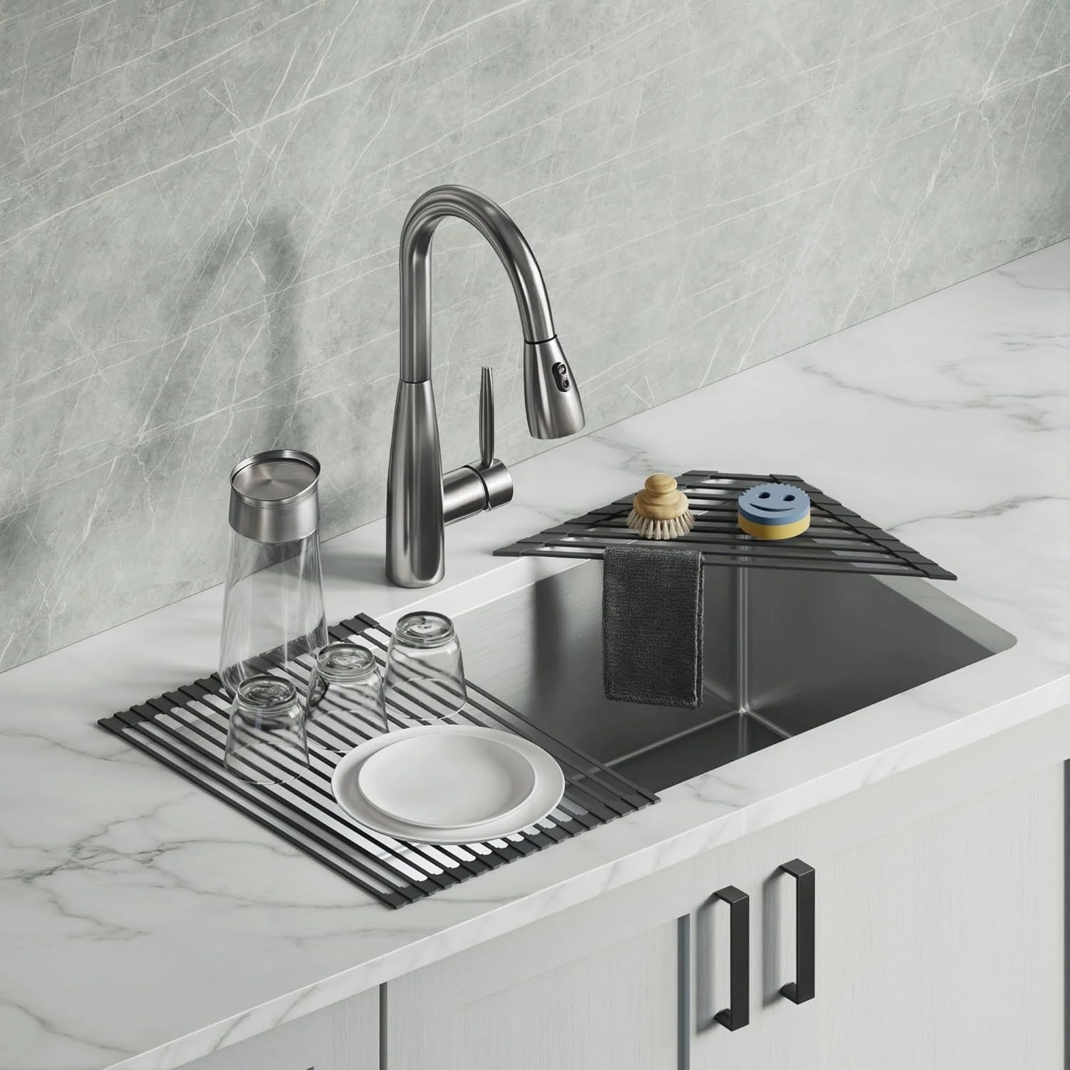 - Fits on Any Surface & Sleek Looks: Designed to stretch over sinks or lay flat on countertops, offering flexibility wherever needed. Smooth silicone finish delivers a modern look that blends seamlessly with any kitchen dΓ©cor.